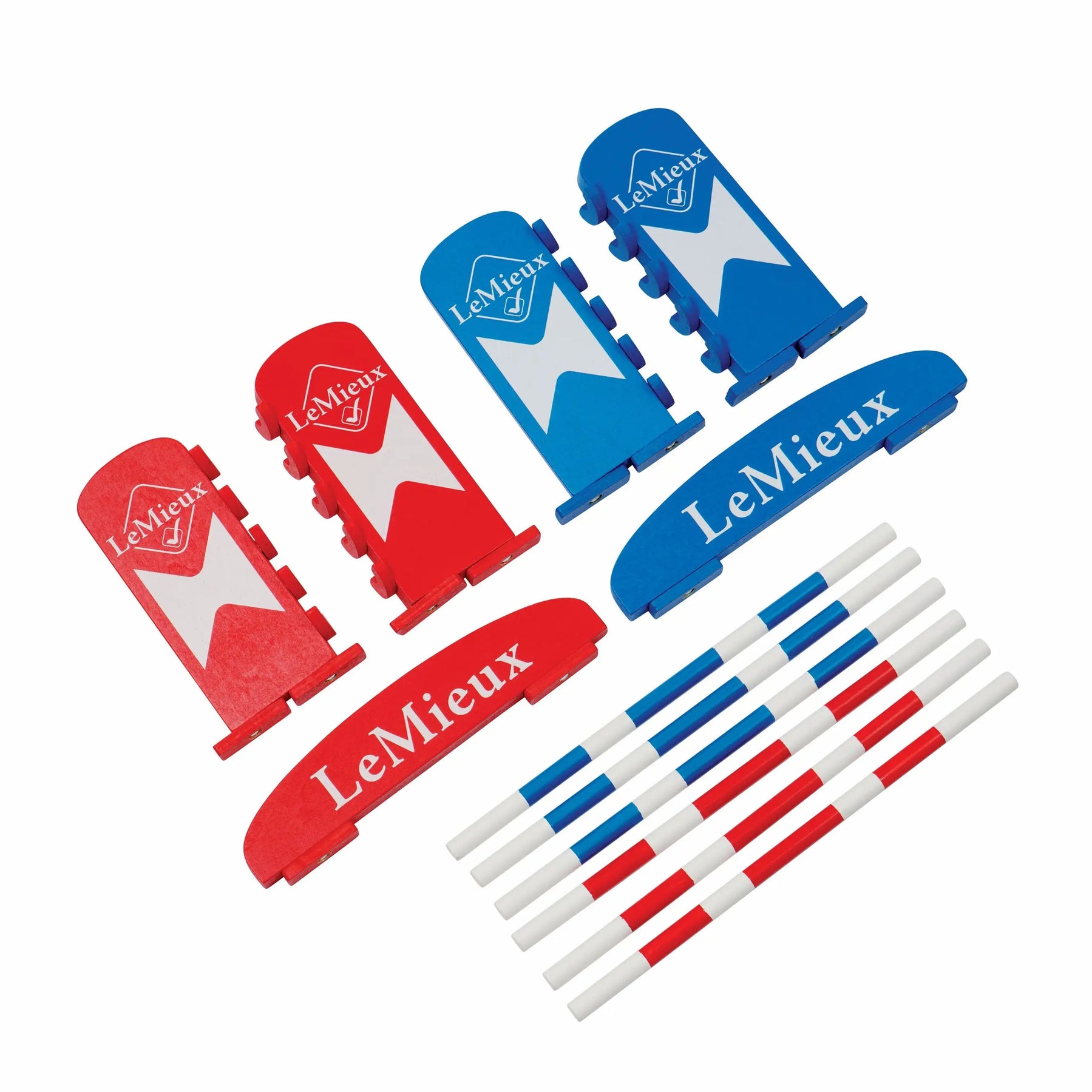 Challenge your Toy Pony to a clear round with this realistic show jump set. These mini replicas are the perfect size for LeMieux Toy Ponies, allowing children to enact an authentic play scenario and play the jumping as a game. Poles will fall if knocked, meaning faults accumulated – just like in the real event! Made with wooden wings, free stranding fillers and individual wooden poles that can be adjusted to different heights and positions, these toy how jumps set the scene for competitive, constructive, imaginary role play.