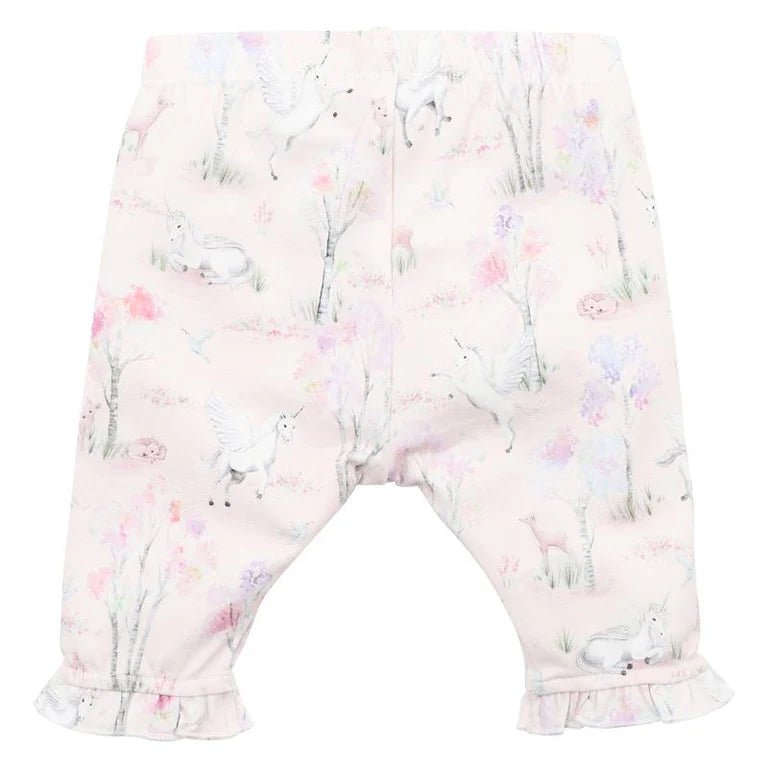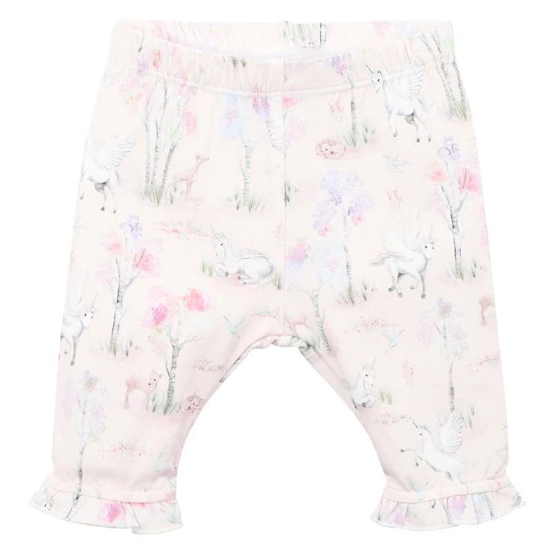 TThese cute whimsical unicorn print 7/8 leggings will quickly become a staple in your little ones wardrobe. Featuring a full elastic waist for a secure and comfortable fit and frilled hems these leggings look great with the Florence unicorn tee.