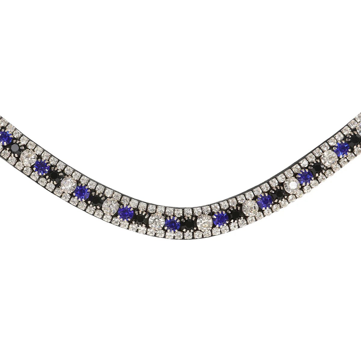 Stunning deep wave browband, in blue, clear and black crystals. Turn heads with this delicate browband that is a stand out on any bridle.